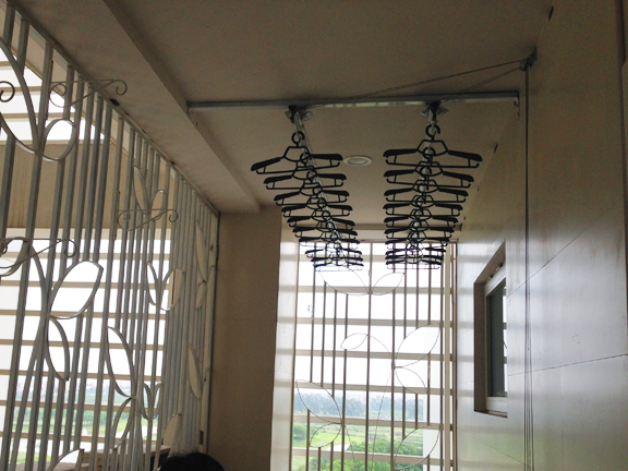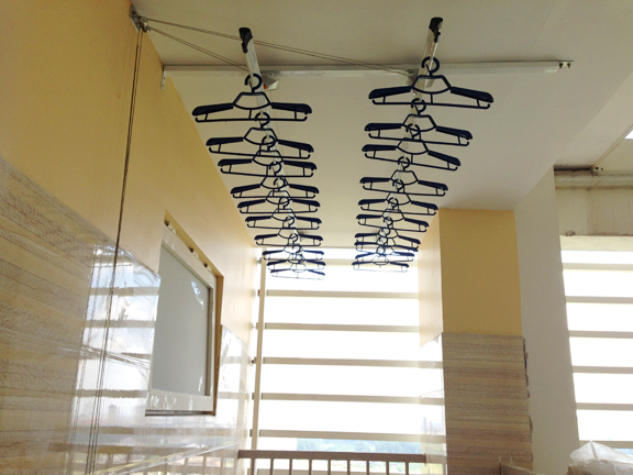2 thanh phơi, mỗi thanh dài 2,4m, làm từ hợp kim Titan cao cấp, có sẵn 80 lỗ treo móc quần áo |