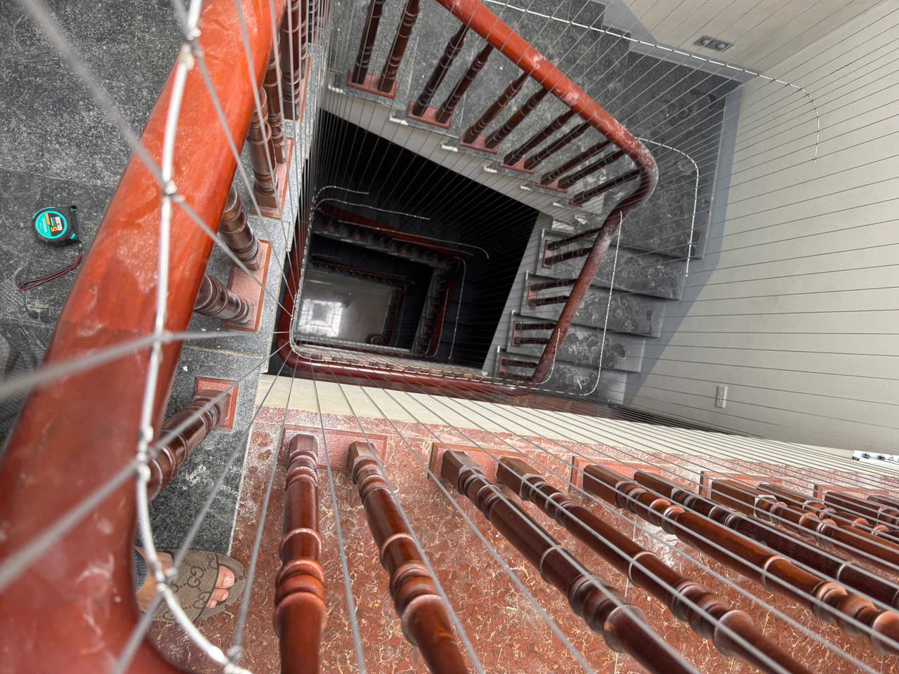 Lưới an toàn trường mầm non sẽ được lắp dọc theo trần nhà và cầu thang. Khoảng cách giữa các dây cáp chỉ khoảng 5cm nên có thể đảm bảo an toàn tuyệt đối cho trẻ trong khi đi lại hay nô đùa.