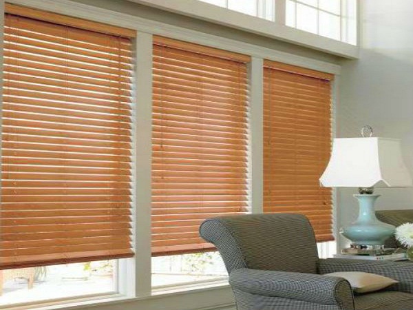 Những thanh gỗ rộng 50mm sành điệu, đặc biệt là khi được ghép nối với dây thang, trông tuyệt vời trong các cửa sổ có kích thước lớn. Phổ biến nhất là rèm gỗ màu trắng kết hợp với dây thang màu gỗ.